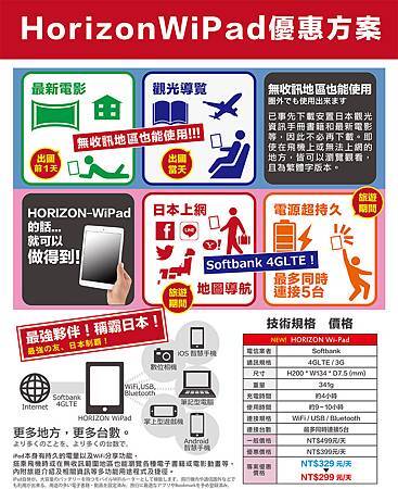 因為社長一直在想,當客戶拿到無線分享器時,因為還沒有出發,所以那台機器暫時發揮不了功用,但是如果客戶拿到的是一台 iPad mini,那就不一樣了。客戶可以在出發前拿 iPad mini 來先查查旅遊資料,做做功課,甚至臨時抱佛腳學學日文都好,也是這一層貼心的服務,讓想要去日本旅行的人多了一種選擇。所以 HORIZON Wi-Pad租用服務 就登場了。